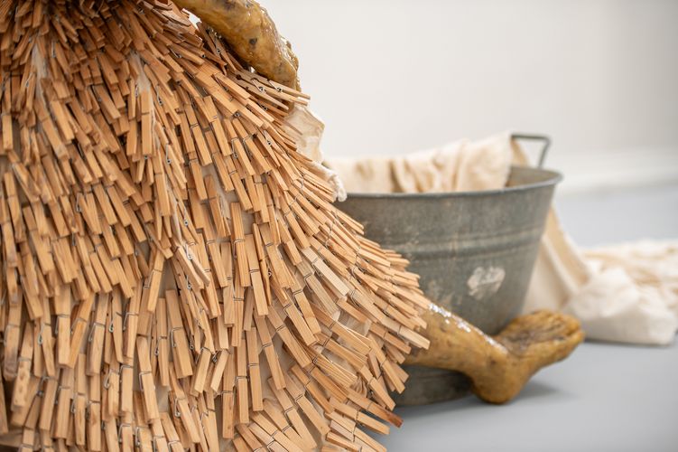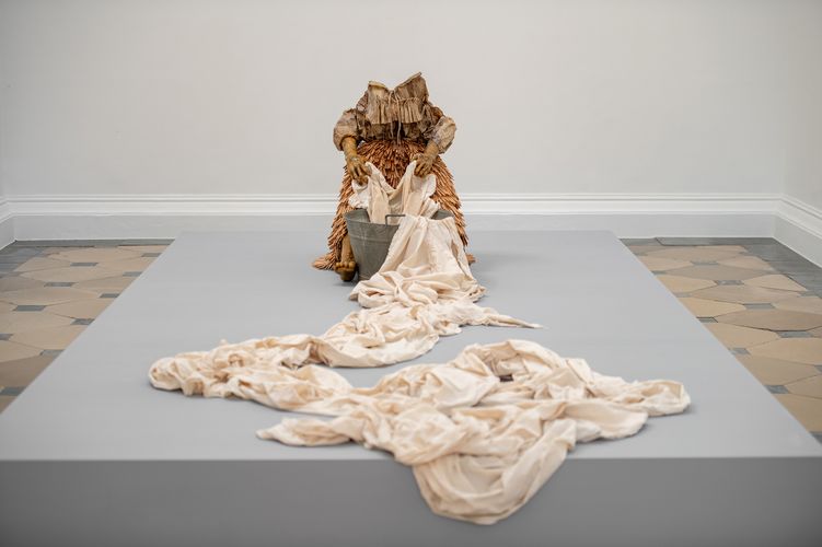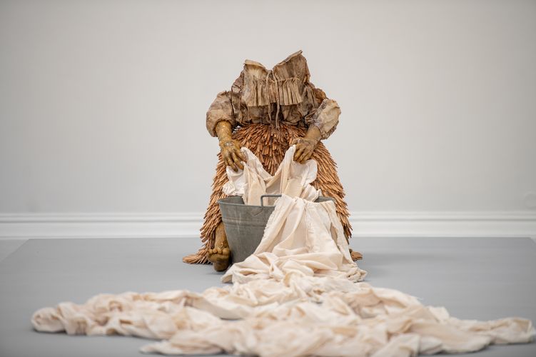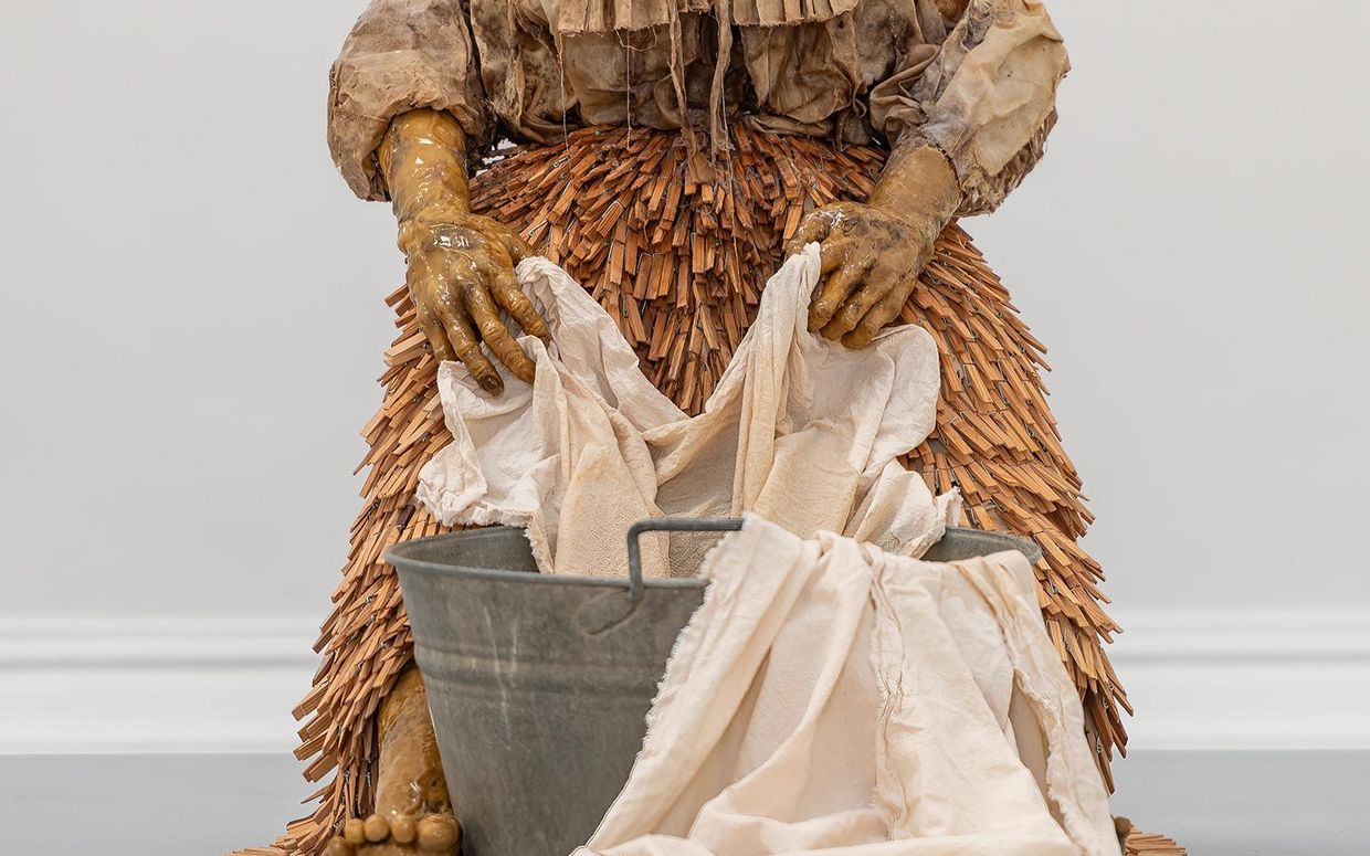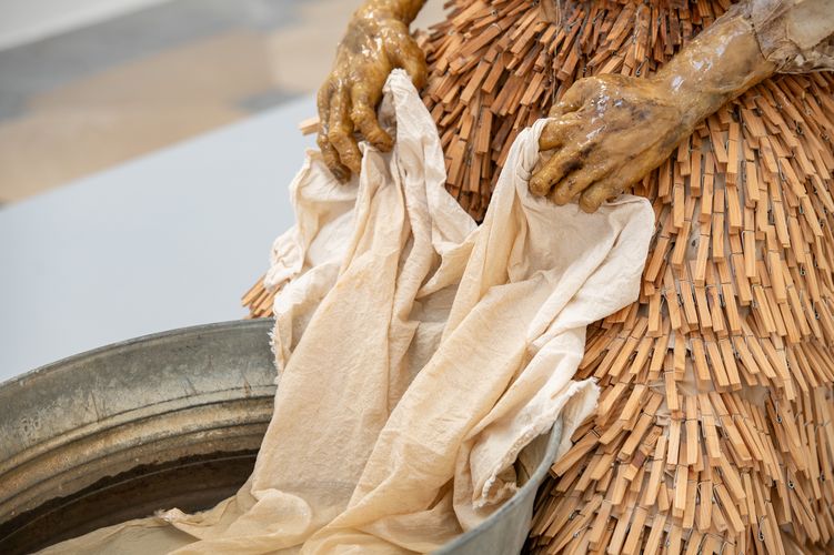 ‘Somehow the Washerwoman became an old friend through the creation process. I sat with her, setting clothes pegs and modelling the wax. I meditated on her story, which is not written down in any book, and hoped that it might reveal itself through the rhythm of my hands working with hers. I think of garments as a kind of time capsule: They literally soak up our blood, sweat and tears. They absorb our essence. Although the woman washes constantly, she cannot remove the remnants of the past, whether they are seen or unseen.