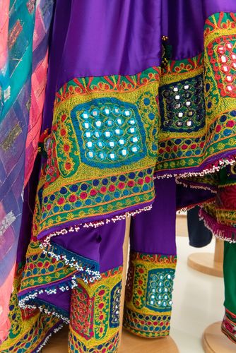 „… aus Afghanistan“ geht es nicht um die Taliban, nicht um die Flucht vieler Afghan*innen oder um schwer bewaffnete Kämpfer, die durch die Straßen Kabuls patrouillieren. Vielmehr sollen von Frauen angefertigte Keramiken oder geflochtene Körbe, Silberschmuck und farbenprächtige Kleider, Gebetstücher und Papierdrachen Einblicke in die Kultur jenseits des Kriegsgeschehens bieten.