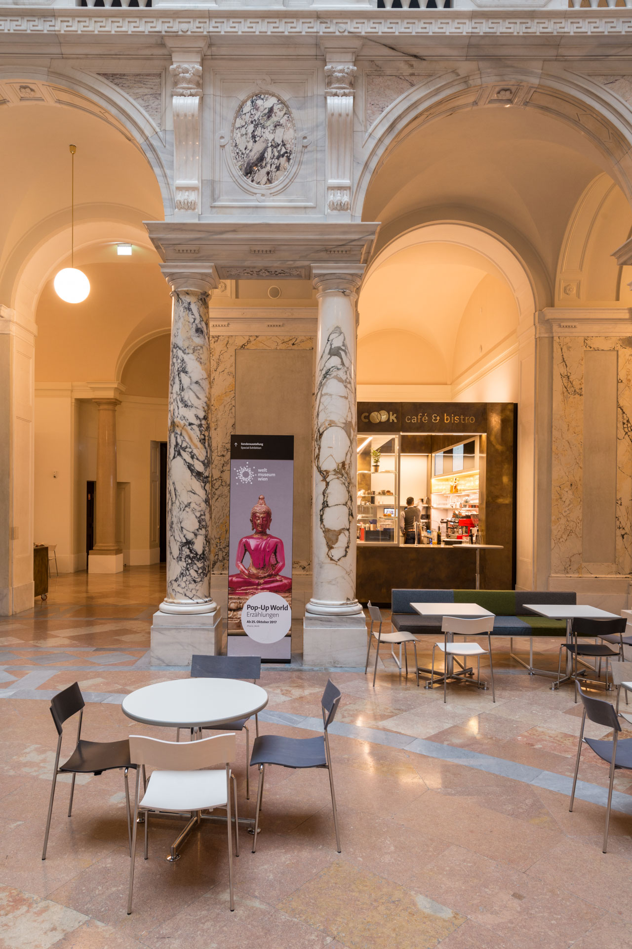 Das cook café & bistro in der Säulenhalle, die Sie auch ohne Ticket besuchen können, zieht sie mit Kreativität und Charakter in seinen Bann. Saisonale und regionale Produkte werden im cook café & bistro groß geschrieben: Unsere Küchenchefs verarbeiten die frischesten Waren und achten auf höchste Qualität. Lassen Sie sich in gemütlicher Atmosphäre vor, zwischen oder nach Ihrem Museumsbesuch mit viel Liebe verwöhnen.