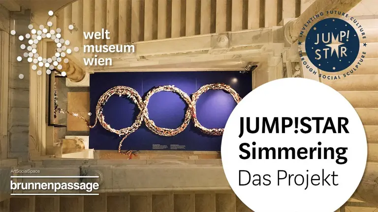 The participants braided a rope made of found fabric scraps during the virtual meetings - as a symbol of solidarity during the period of separation. The participants' personal pieces of rope were then sent to the Brunnenpassage in the summer of 2020 and connected to form a long rope as part of an outdoor action in Simmering; this rope sculpture was thus created as a symbol and unifying document of this exceptional period. The resulting Double Infinity Rope is to be presented at the Weltmuseum Wien together with extensive documentation of the JUMP!STAR production, such as sound elements, research work on pandemics, photographs as well as quotations from the participants as a testimony to the present.