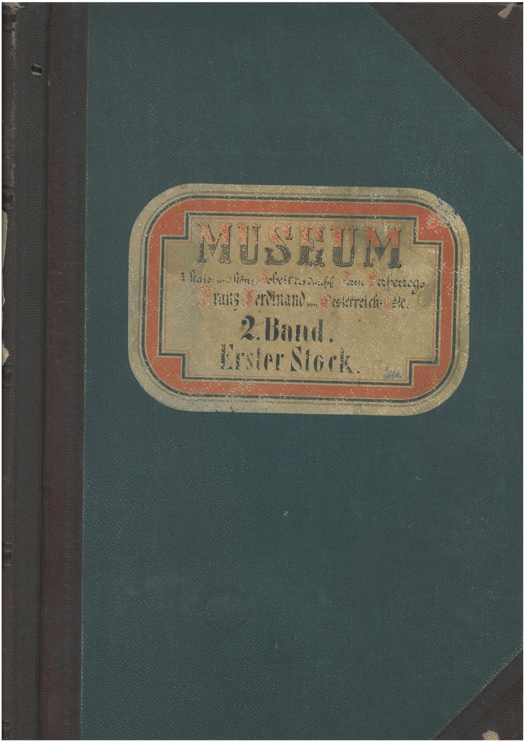 2. Band des dreibändigen handschriftlichen Inventars der im »Museum Sr. kais. und kön. Hoheit des durchl. Herrn Erzherzogs Franz Ferdinand von Oesterreich-Este« in der Beatrixgasse 25 aufgestellten Sammlungen: »Erster Stock«.
