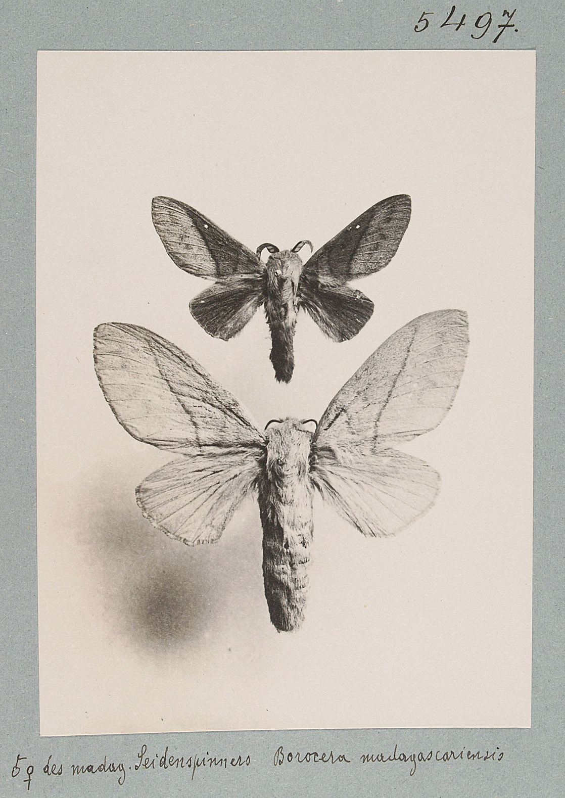 Männchen und Weibchen des madag. Seidenspinners, Borocera madagascariensis