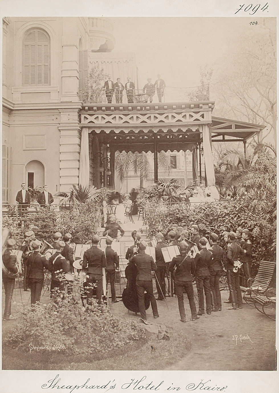 Orchestral concert in front of the terrace of Shepheard’s Hotel