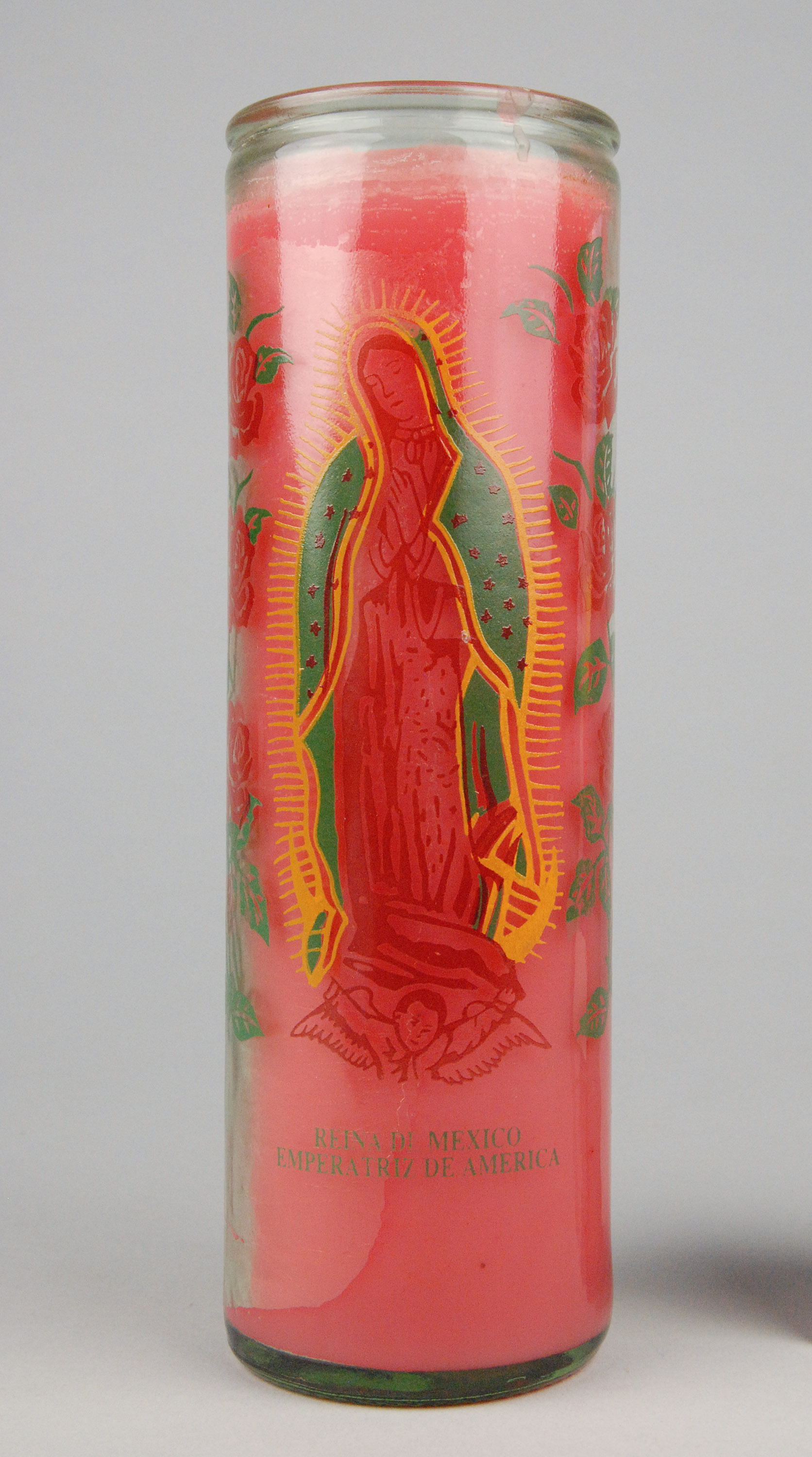 Candle with image of Mary. "Queen of Mexico, Empress of America"