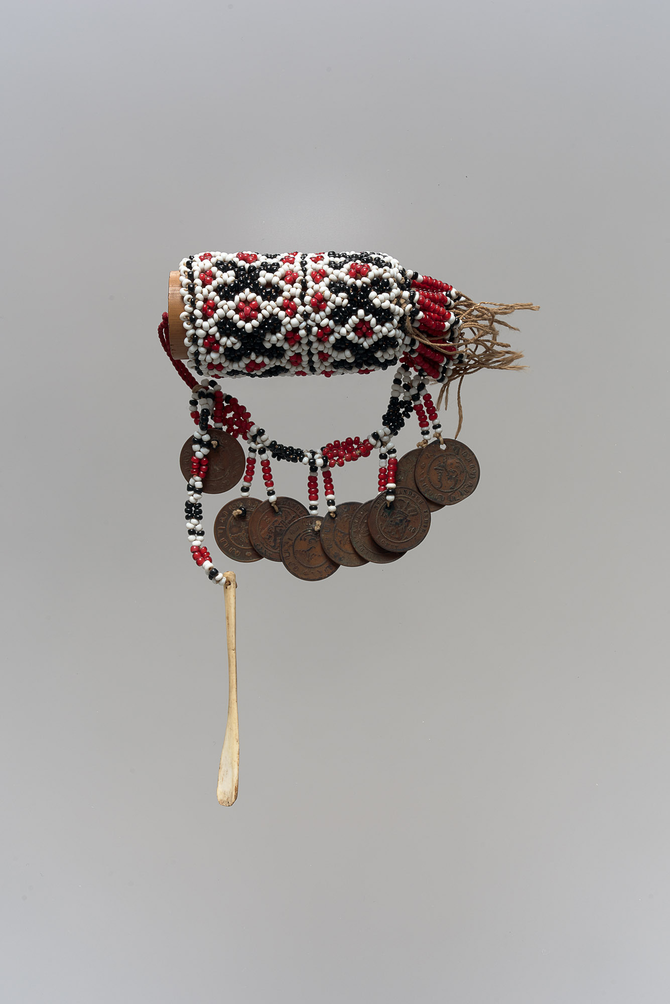 Bamboo, studded with glass beads, coins