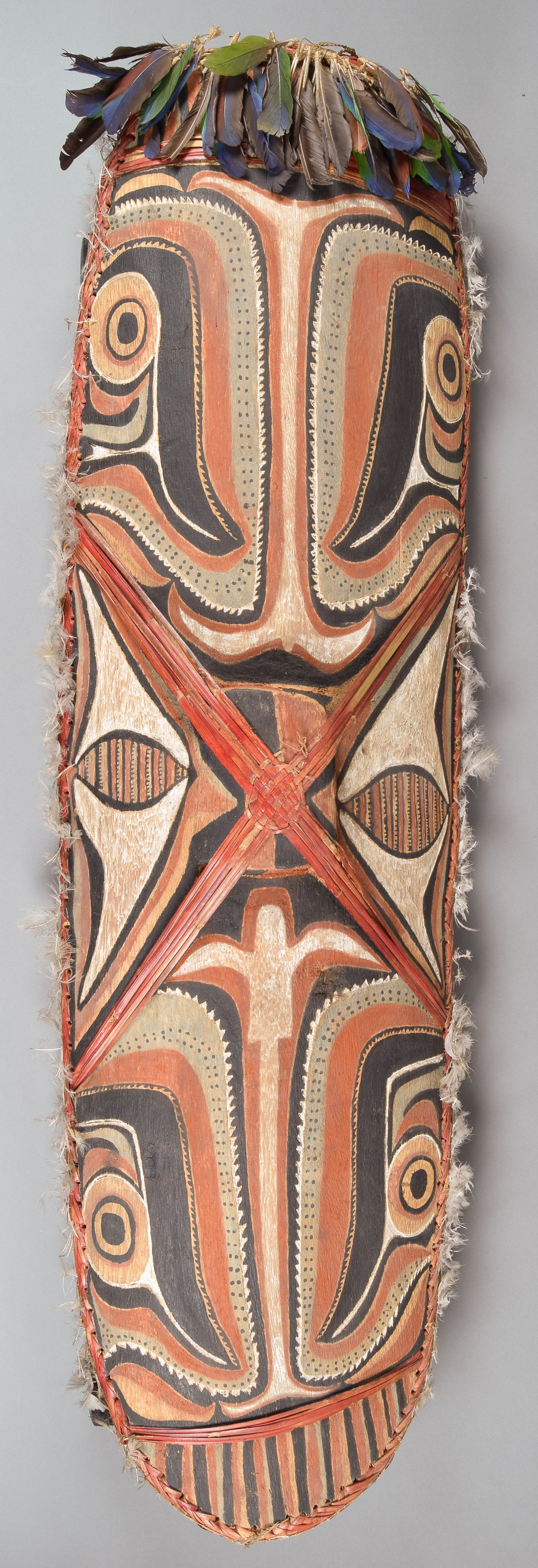 Wood, feathers, rotang palm, feathers, plant fibres