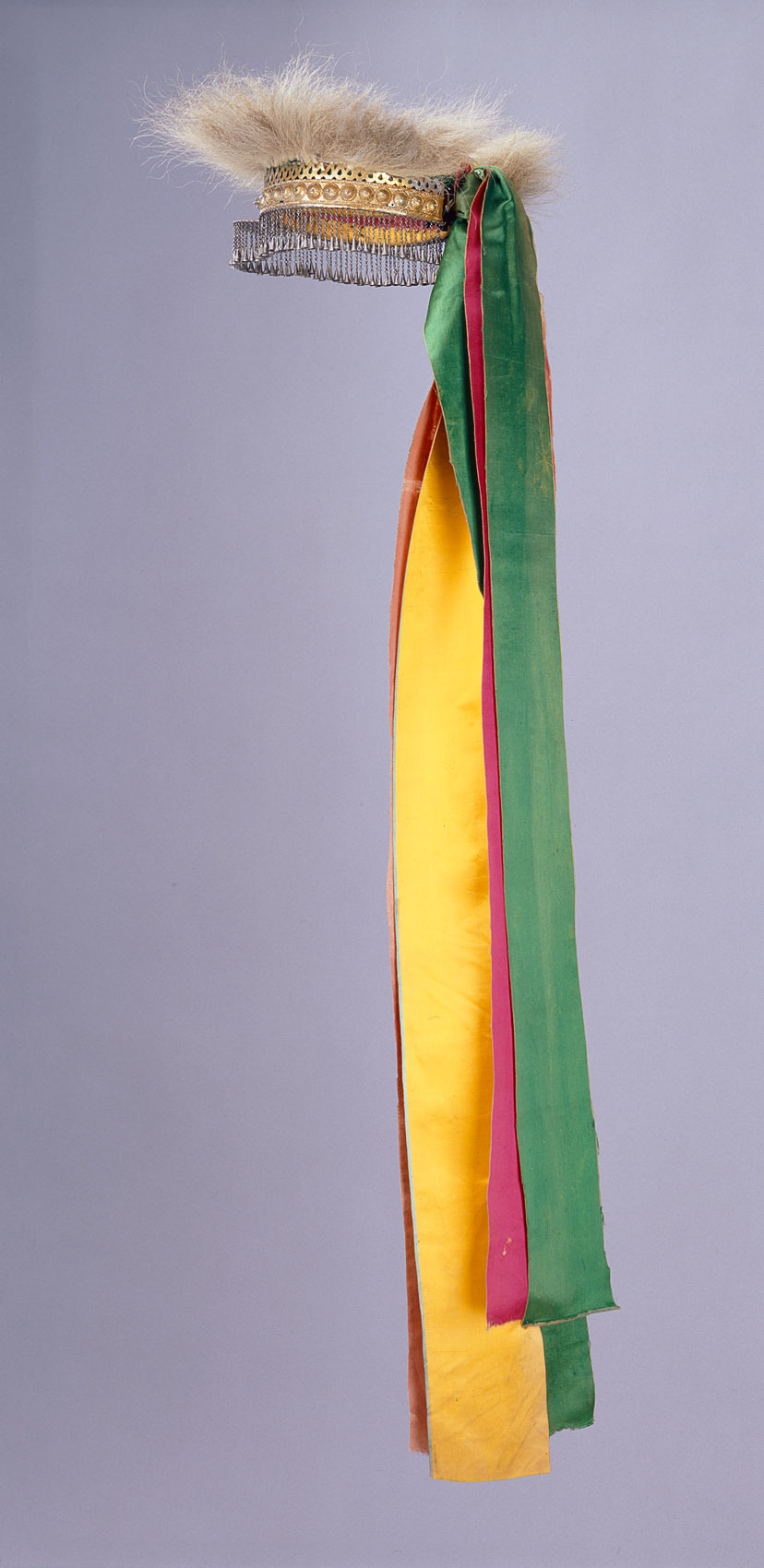 Lion's fur (mane), leather, silver, satin from silk and cotton