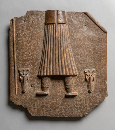 This Relief Plaque: Lower Body of a Portuguese is part of the historical collections from the Benin Kingdom, in present-day Nigeria. In 1897, the kingdom was conquered and Oba (king) Ovonramwen banned into exile. The loot from the royal palace was then sold through the art market to finance the conquest in retrospect. Many of these objects today constitute European collections.