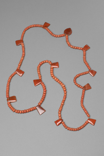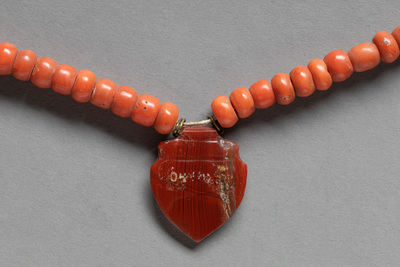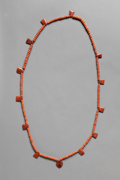 This Coral Necklace is part of the historical collections from the Benin Kingdom, in present-day Nigeria. In 1897, the kingdom was conquered and Oba (king) Ovonramwen banned into exile. The loot from the royal palace was then sold through the art market to finance the conquest in retrospect. Many of these objects today constitute European collections.