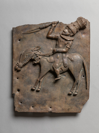 This Relief Plaque: Horsemanis part of the historical collections from the Benin Kingdom, in present-day Nigeria. In 1897, the kingdom was conquered and Oba (king) Ovonramwen banned into exile. The loot from the royal palace was then sold through the art market to finance the conquest in retrospect. Many of these objects today constitute European collections.