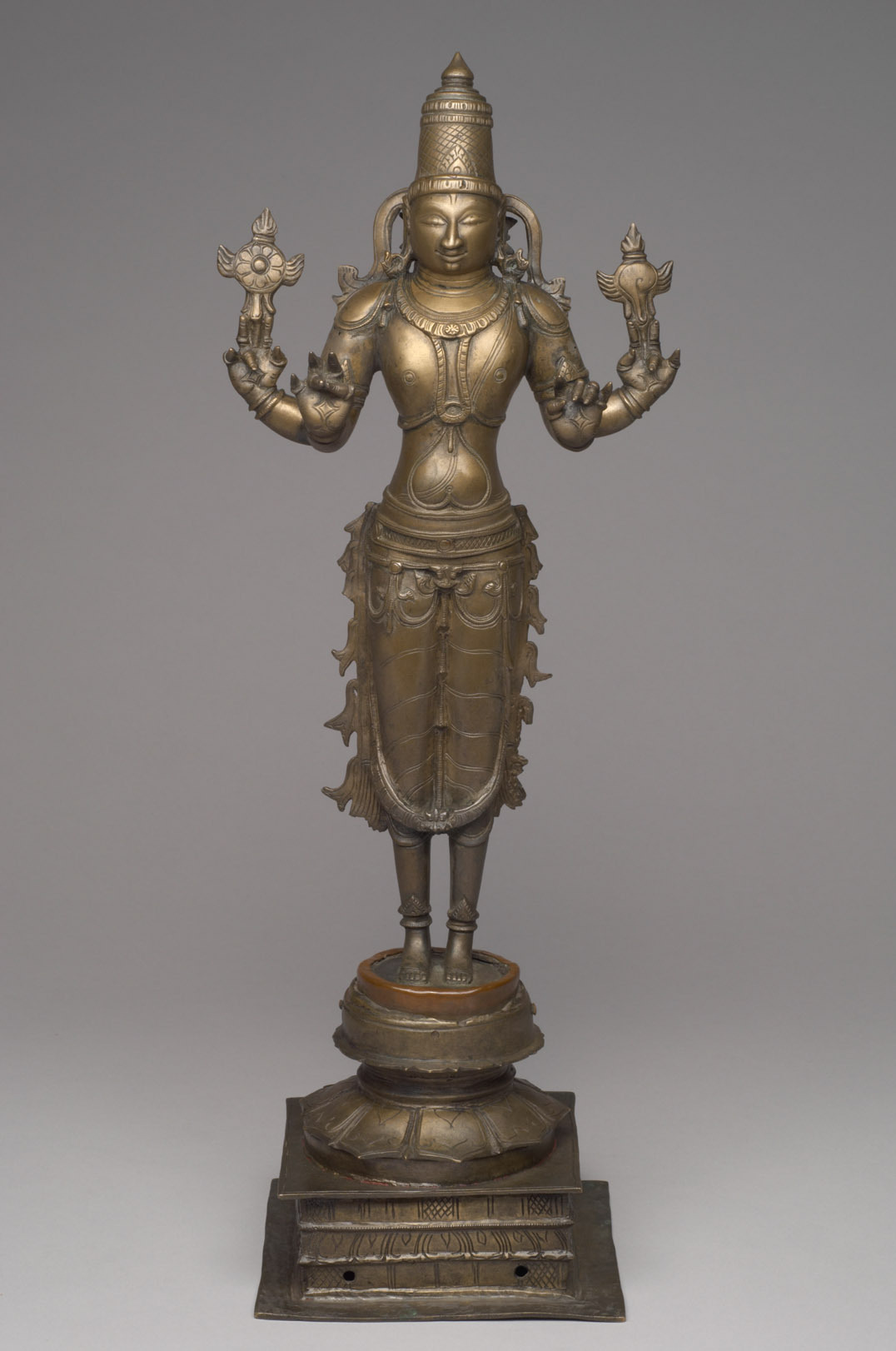 This statue from the pre-Islamic period of the Chola kings (heyday 9th - 13th century) in South India refers to their role as the founders of a burgeoning artistic production to decorate many new temples, which became the cultural centre of this era. Statues of the gods fulfilled their role in daily rituals as well as in processions and temple festivals.