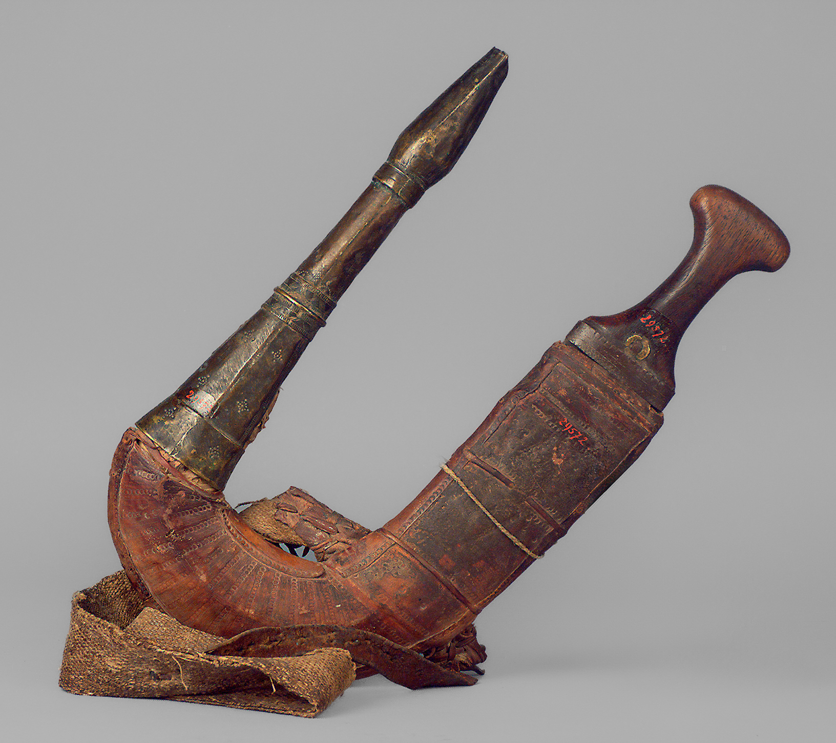 Curved daggers are an important status symbol for men in Yemen. They are worn on the belt.