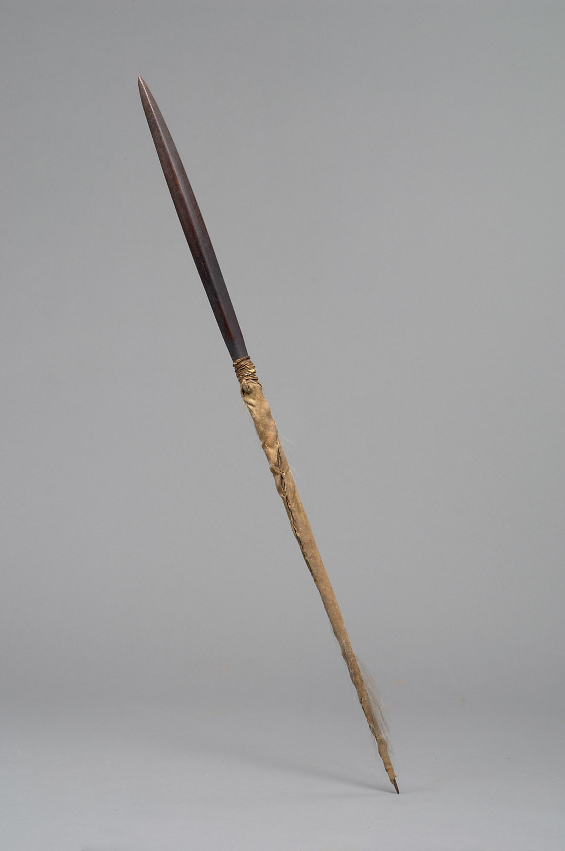 Wood, dog hide, dog hair, feathers