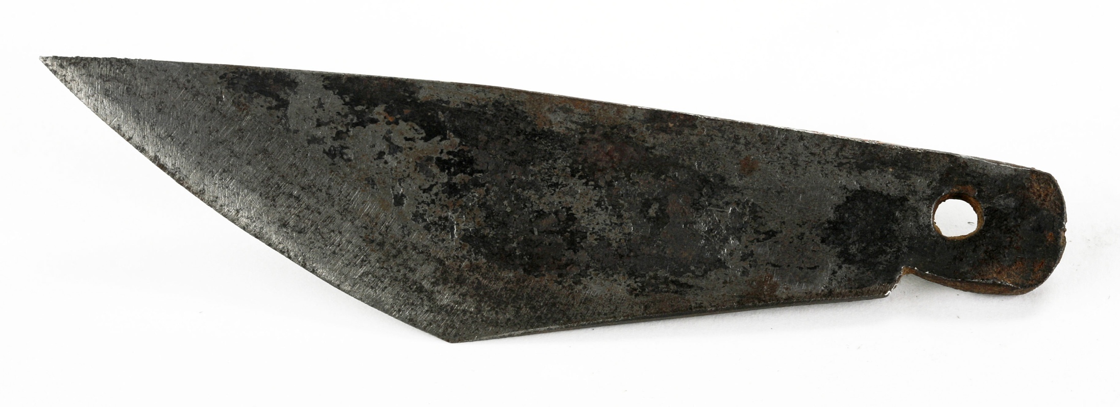 Two short thick knives without hilts which are used to cut and shape the rattan which is used for different basketry work. Normally two such knives are driven with their points into a board and the rattan, already split, is drawn between them to make them smooth."