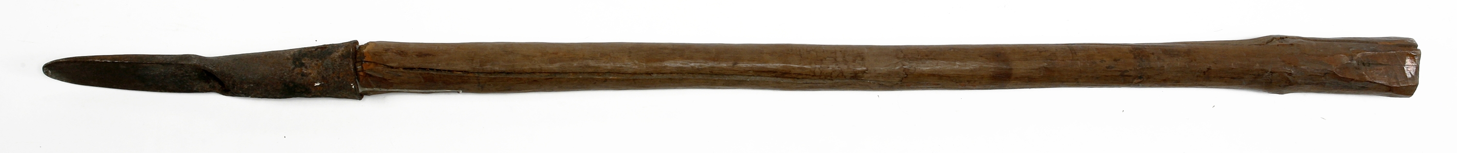 A small, spade-like iron with a long handle of hard wood, used by the natives to turn the soil in the garden and the maize field. It is simply pushed into the soft ground with the hands, then it is turned so that the earth is raised, piece by piece."
