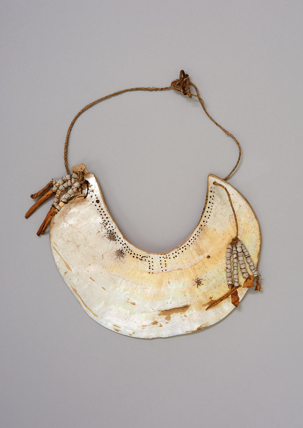 Kina shell, plant seeds and fibres