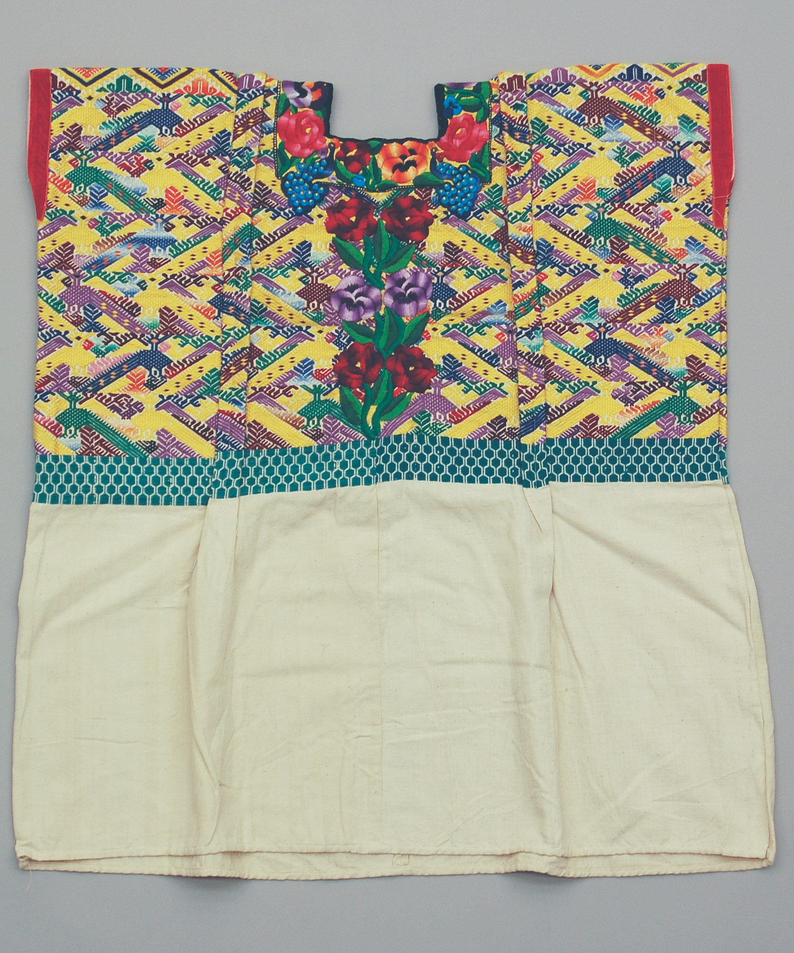 Huipil for feast days with blossom and Quetzal-bird motifs