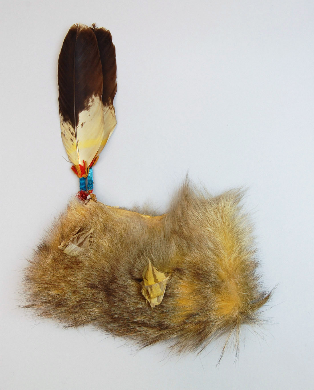 Fur, feathers, cotton, glass beads, wool, leather