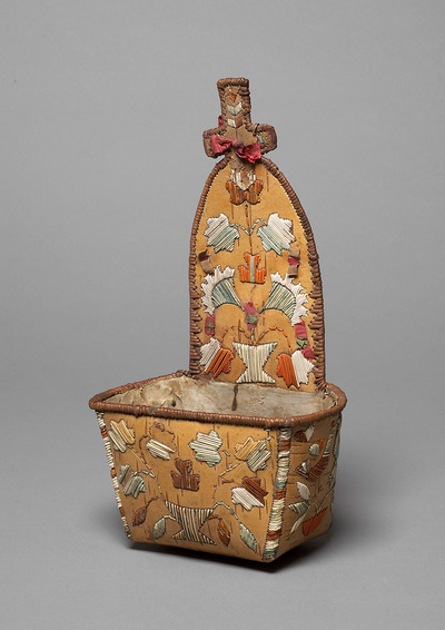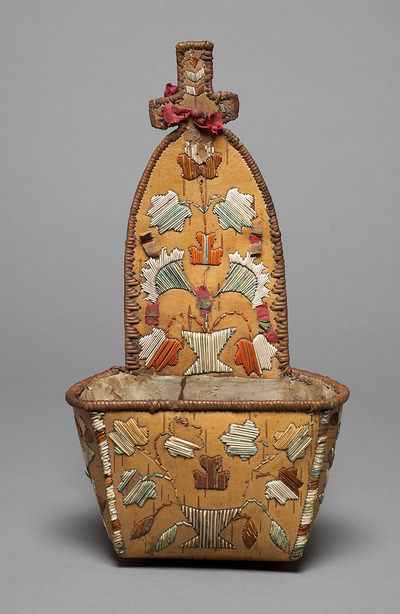 Birkenrinde, Wurzelspäne, Stachelschweinborsten, Seide, Baumwolle, Farbe