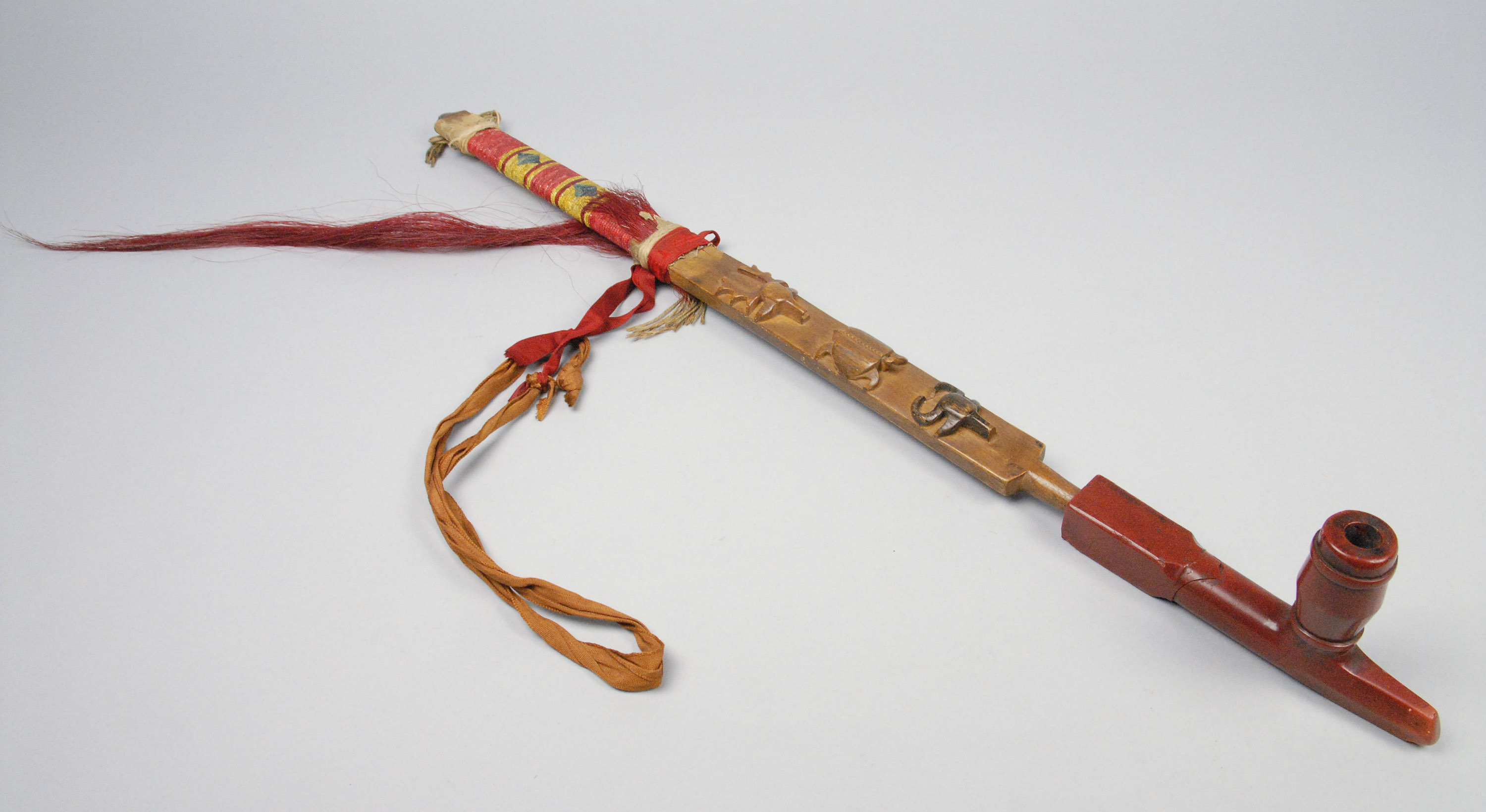 Pipe with relief carving of Elk, Turtle and Buffalo
