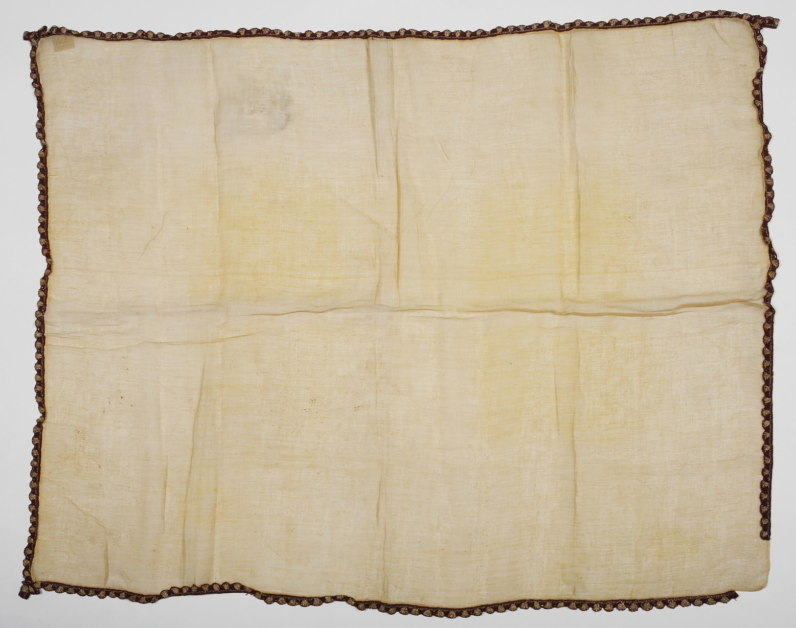 A small handkerchief made from a piece of European gauze, with a gold embroidered lilac hem. Held in the hand at high ceremonies and feasts by privileged women and ladies in waiting as an ornament; also placed in little boxes and handed around at banquettes for drying the hands after a meal, naturally, only pro forma."