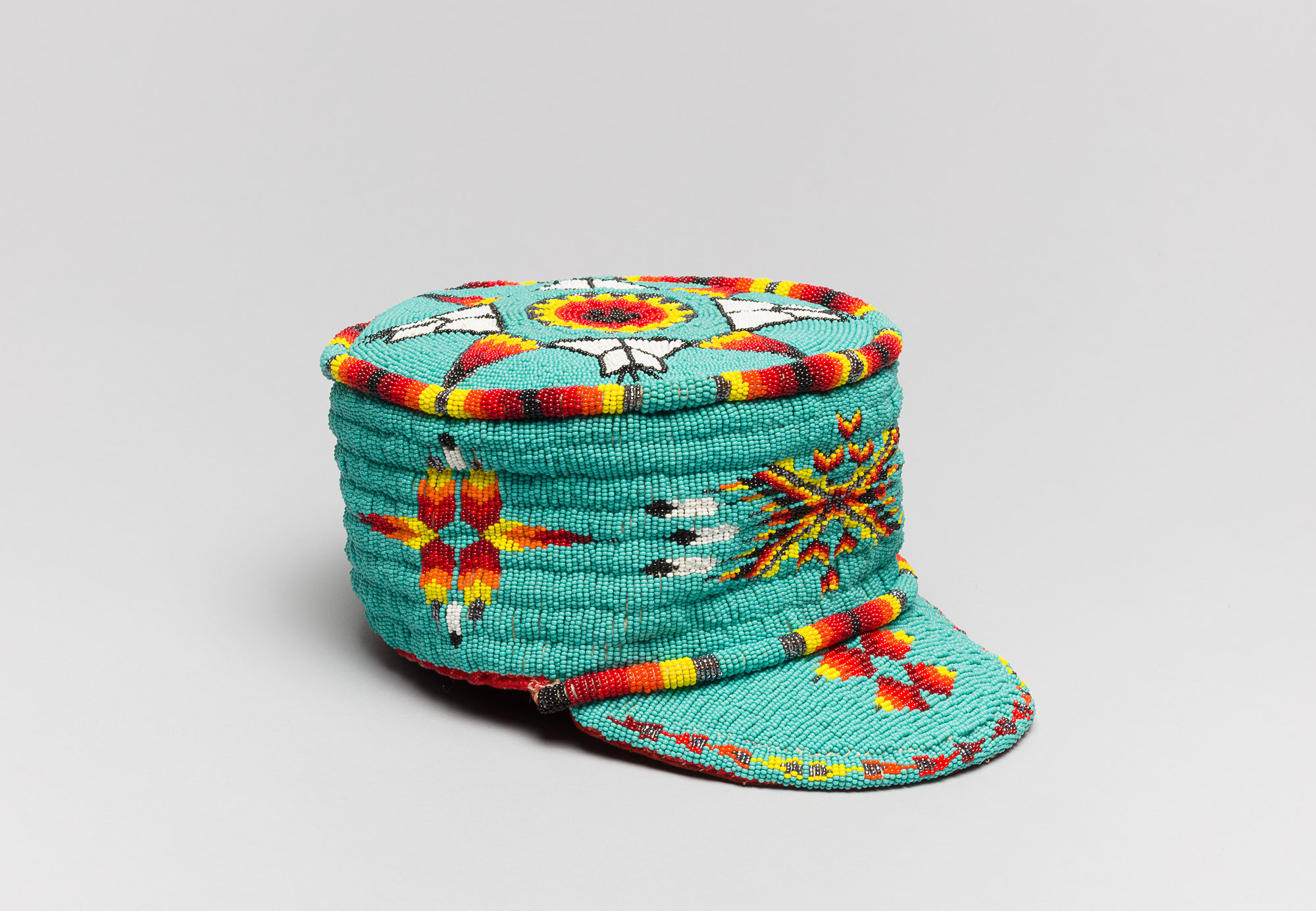 Military cap with tipi and feather designs