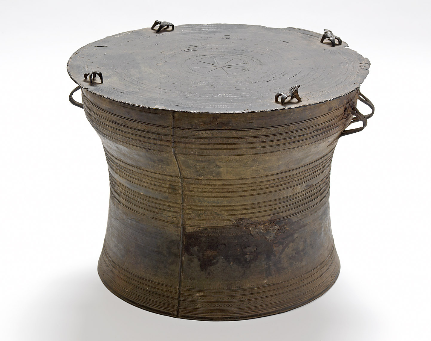Kettle gongs of this type were ritually struck from the 10th century onwards in the region of northwest Vietnam, southern China, Laos and Myanmar by the Thai, Yao, Karen and Miau ethnic groups. Starting in North Vietnam, the kettle gongs spread across the mountainous region of the Greater Hinterland.