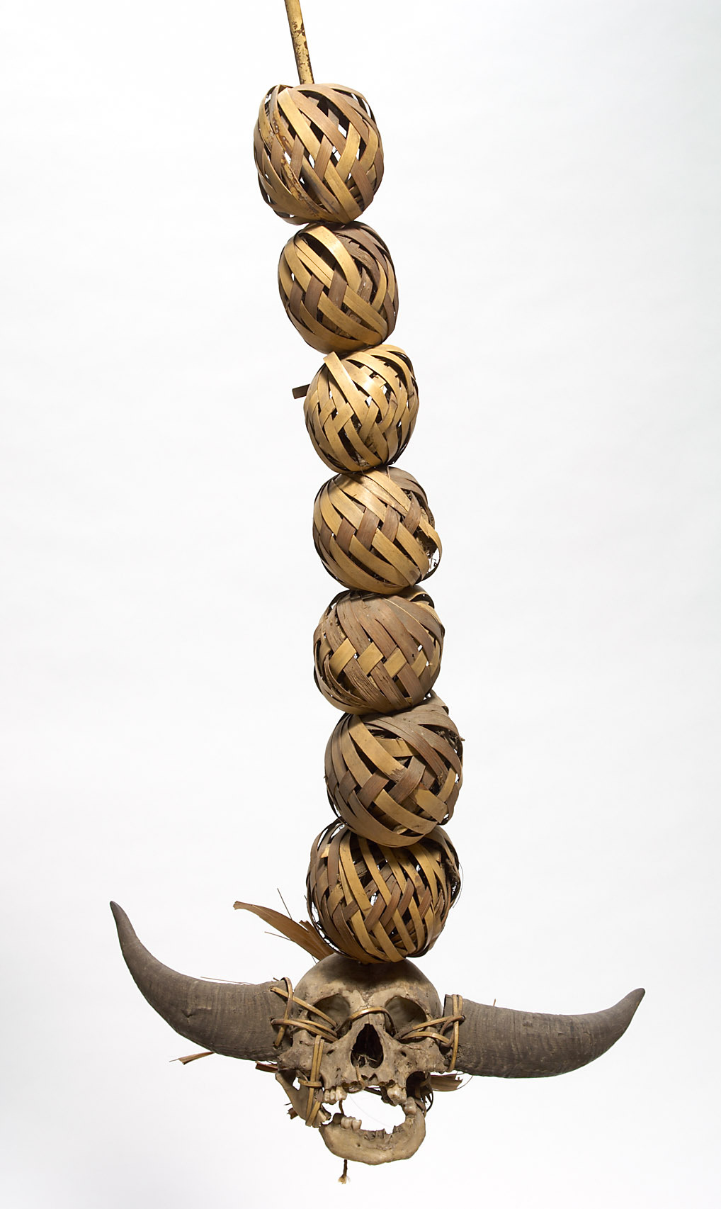 Capturing heads was seen as a socially necessary form of violence with profound religious and cultural significance. The fight was not about the appropriation of material things but about the highest good - life. Headhunting was embedded in a system of rites and taboos that created an idealised space that placed headhunting outside of everyday life.The motivation for headhunting was manifold. The early ethnographers usually claimed somewhat vaguely that there was a connection between a "soul substance" that was located in the head and that after death was returned to the cycle of fertility of women and fields. A captured head from another village therefore meant additional fertility for one's own. This may not be entirely wrong; an old Rengma-Naga told us a few years ago that the captured heads were kept in their rice granaries.A much more common Naga explanation is that a successful headhunt entitled one to wear certain jewellery, hats or cloth, and that no girl would look at a young man unless he had taken part in a raid or headhunting ceremony. The death of one brought prestige and social status to the other, and with it the right to beauty - beauty in the form of fancifully decorated objects that only a successful headhunter was allowed to wear. Although the motifs of headhunting dominated the material culture of the Naga, in practice it rarely took place, for example when a community house was built or in the case of events that threatened the well-being of the village community.