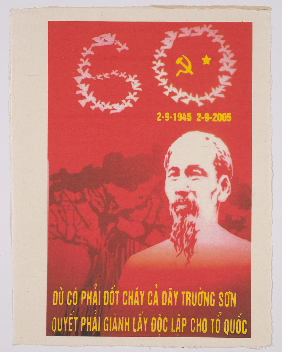 The poster commemorating the 60th anniversary of the proclamation of independence with the inscription "Despite the burning Truong Son Mountains, we are determined to liberate the country" recalls the legendary Ho Chi Minh Trail, which led over the Truong Son mountain range (Annamite chain) along the border with Laos and Cambodia.