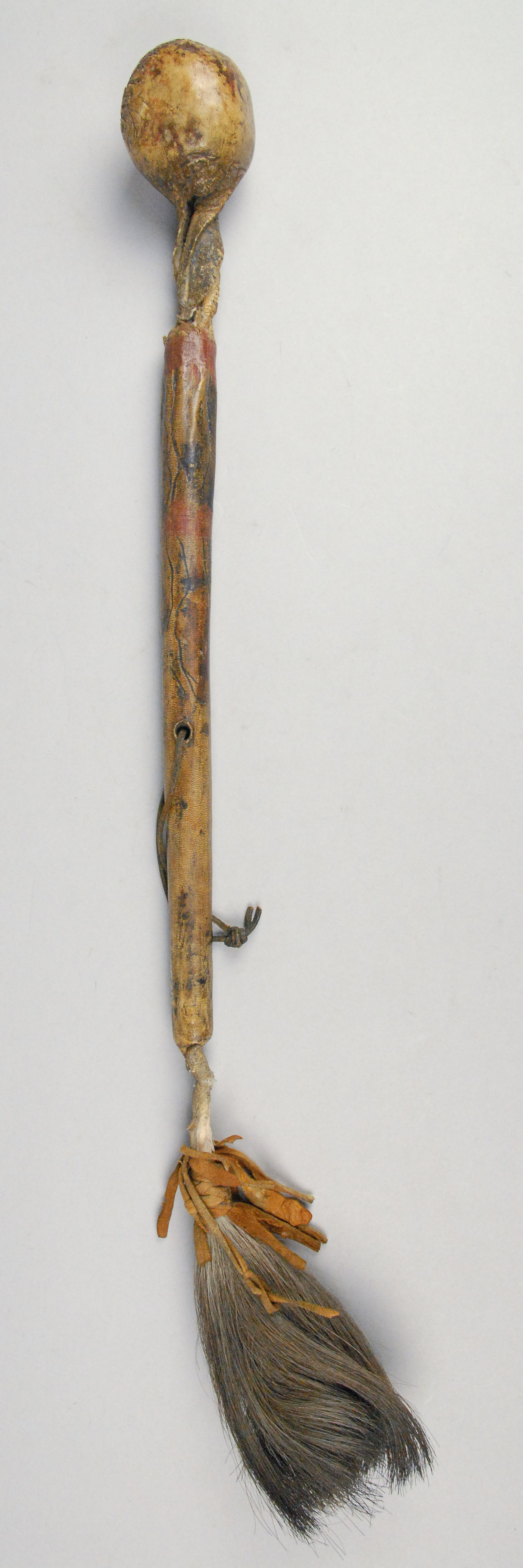 Stone, wood, rawhide, animal hair, leather