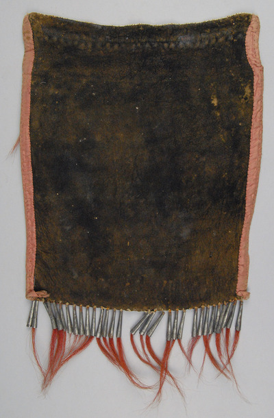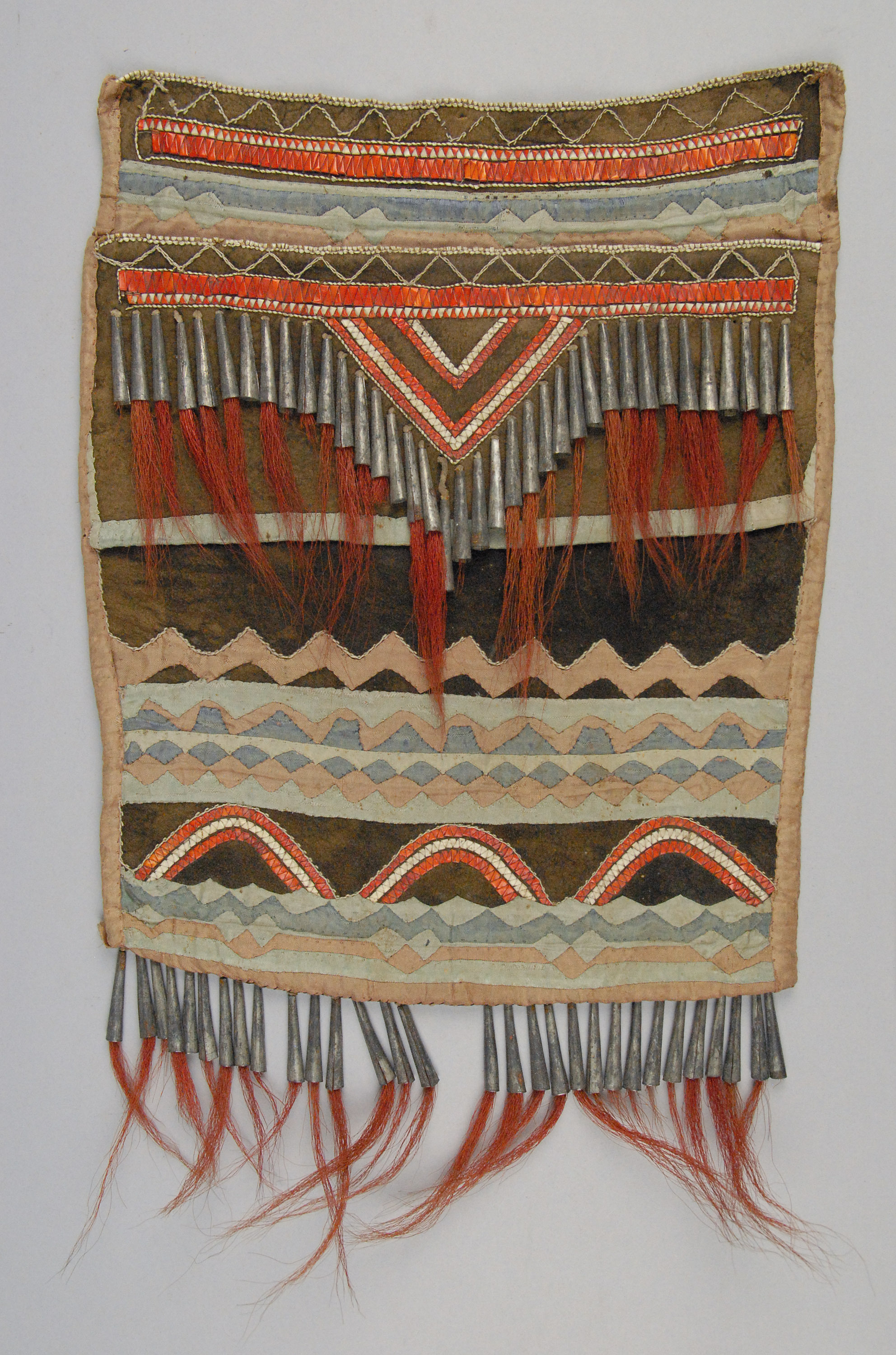 Leather, dyed porcupine quills, silk, metal, hair, sinews