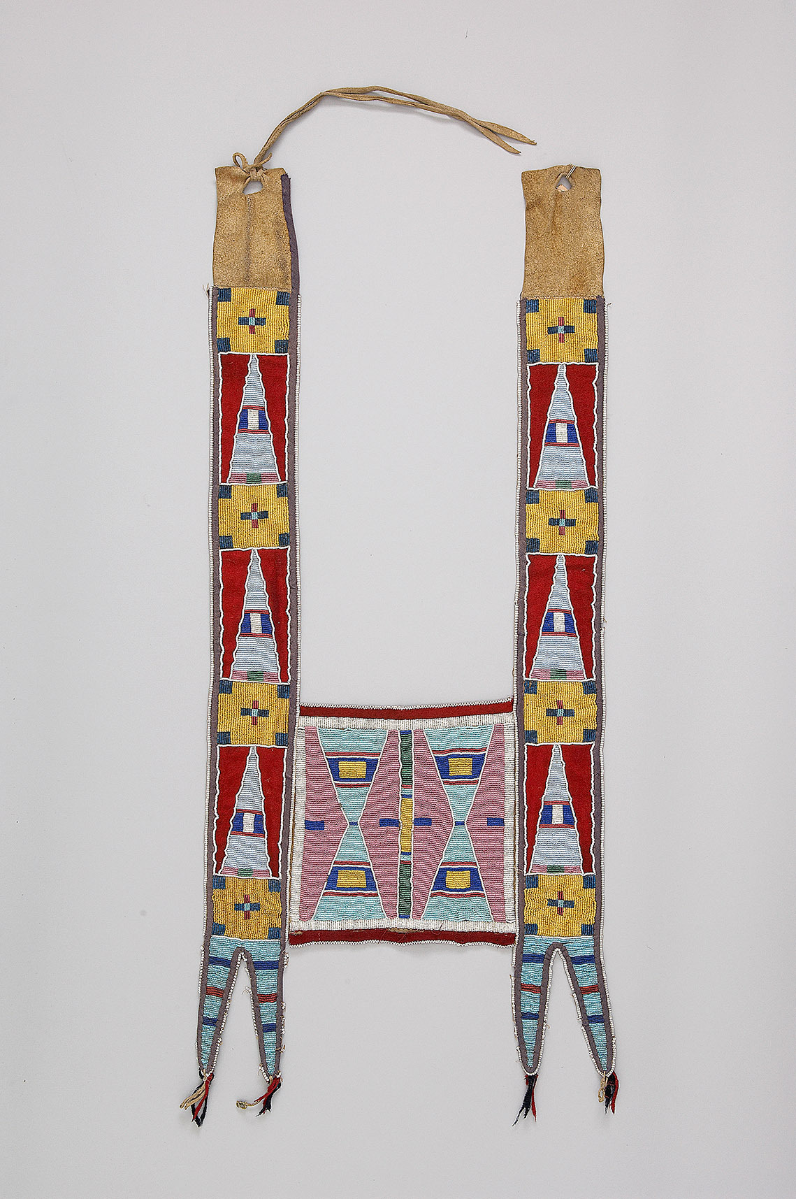 Textile, wool, leather, glass beads