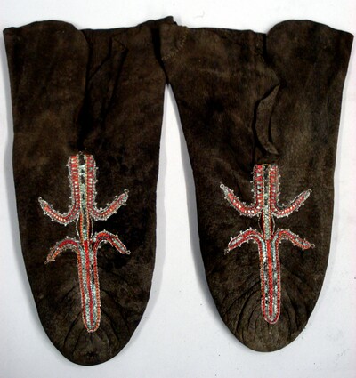 Leder, Stachelschweinborsten, Baumwolle, Farbe