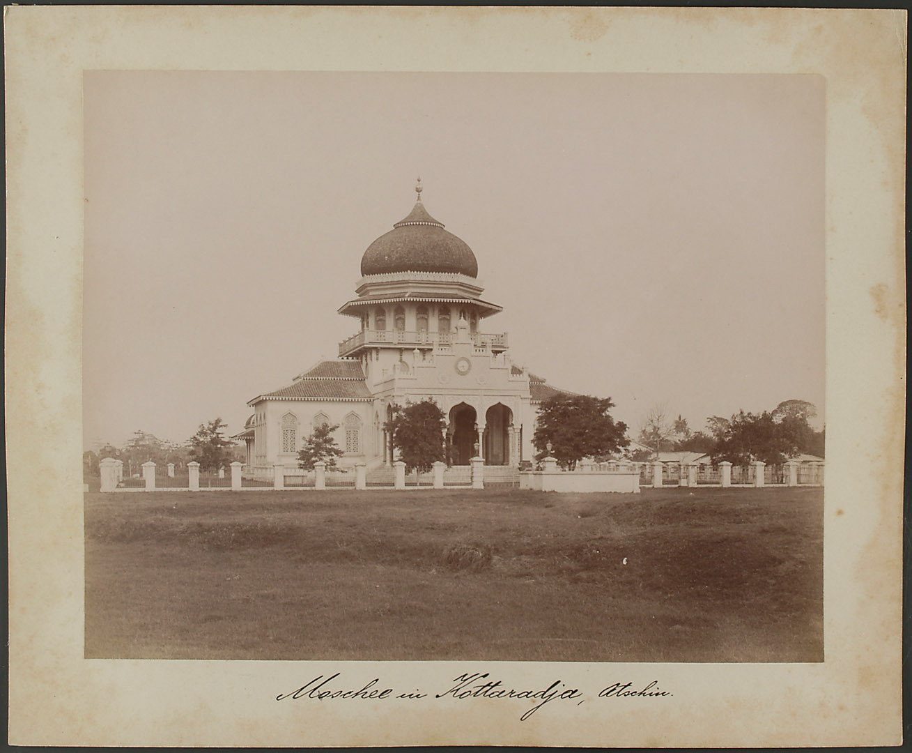 This is the Mosque Baiturrahman in Banda Aceh, Northern Sumatra. It was designed by the Italian architect de Bruchi. Construction began in 1879, and the building was completed in 1881.
