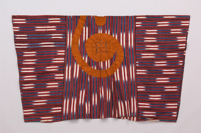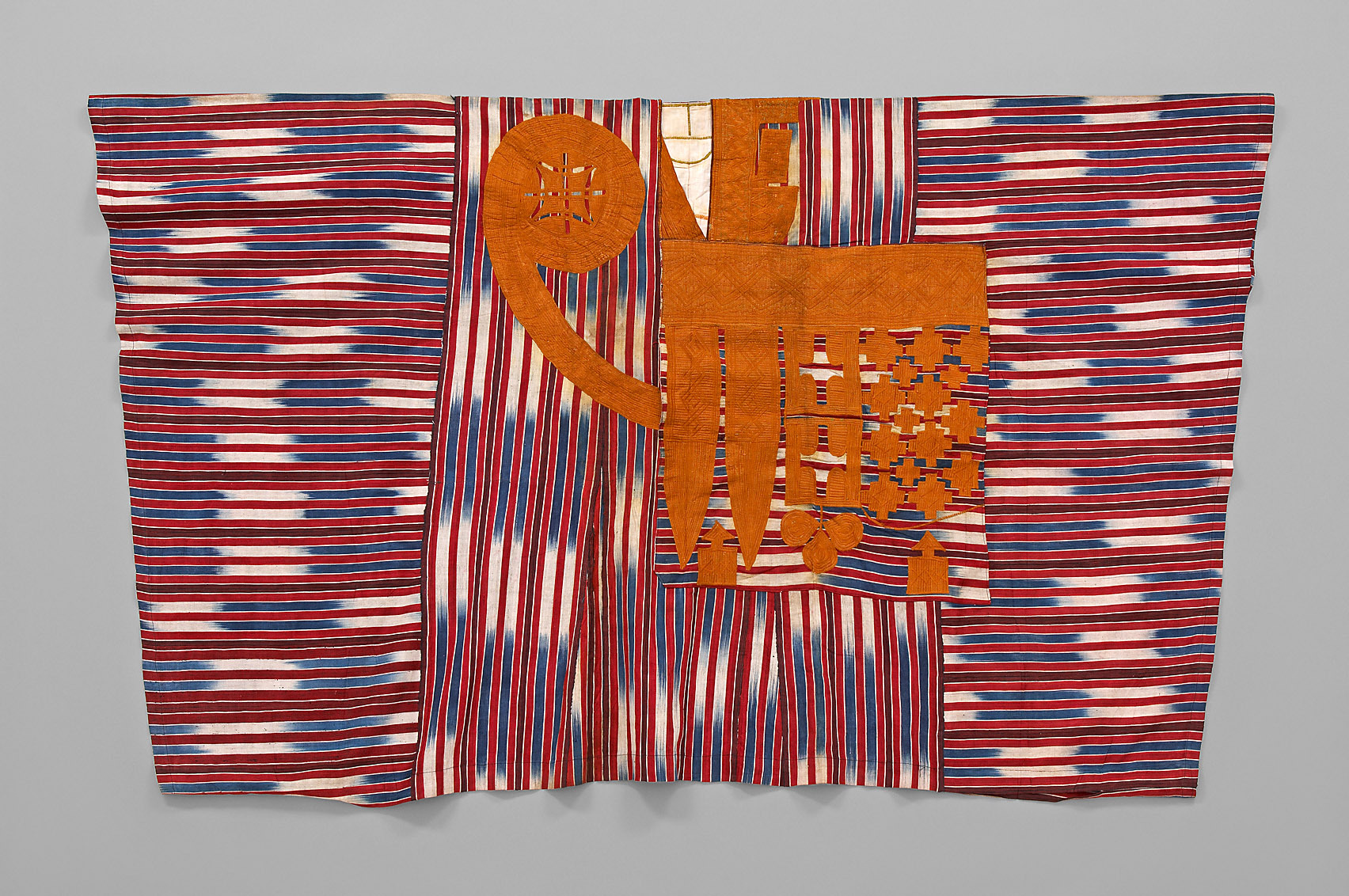 Cotton fabric in ikat technique, plain weave, machine embroidered with cotton yarn