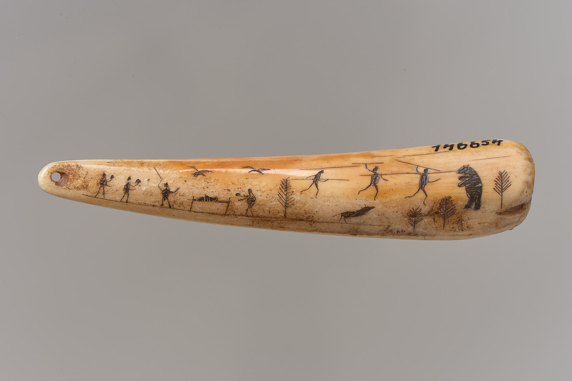 Anhänger mit Gravierung: Bärenjagd, Schlittenfahrt, Heimkehr vom Fischfang