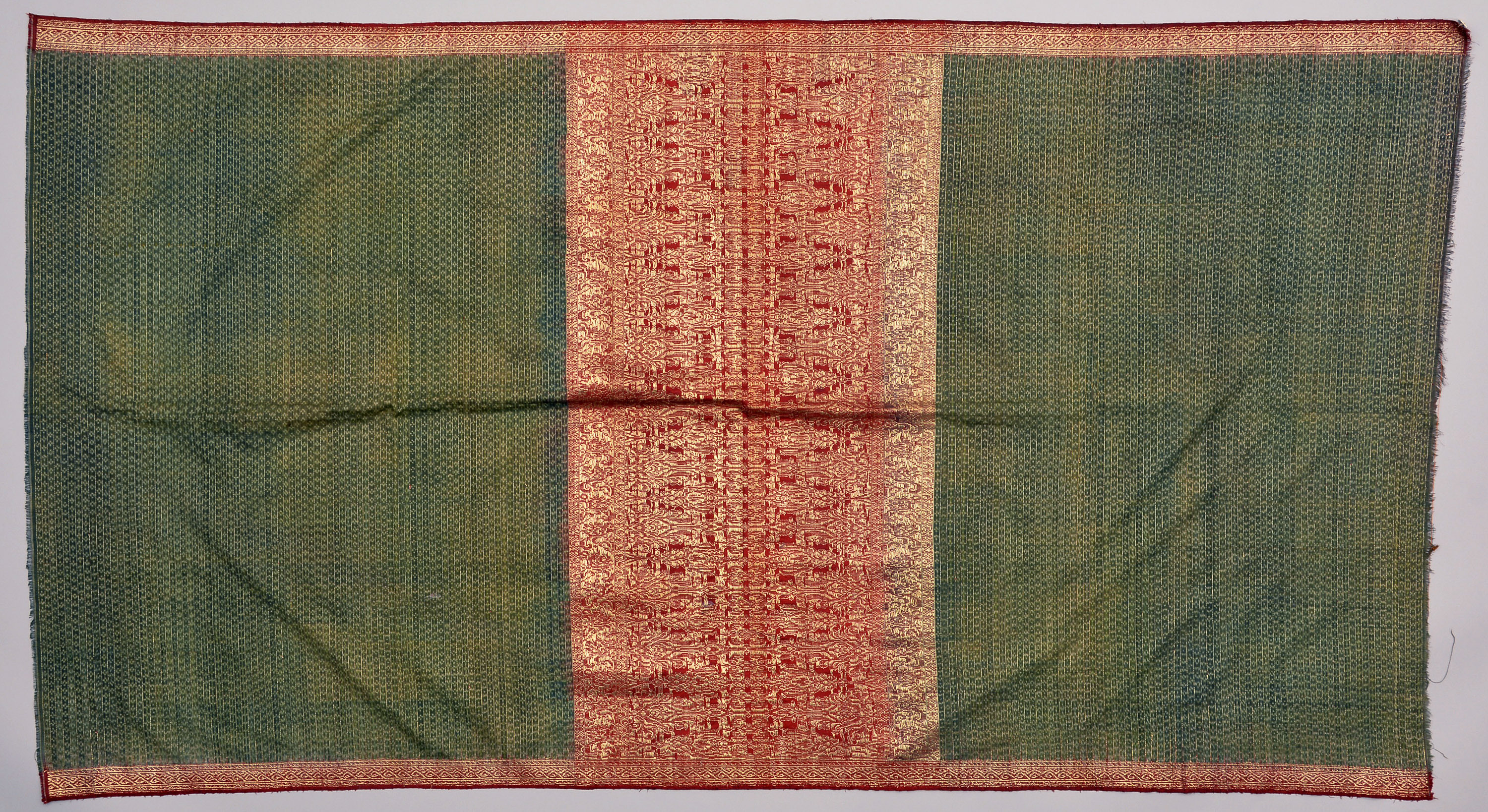 Seide, Leinwandbindung, Schussikat, lanciert, Goldlahn mit Seelfaden