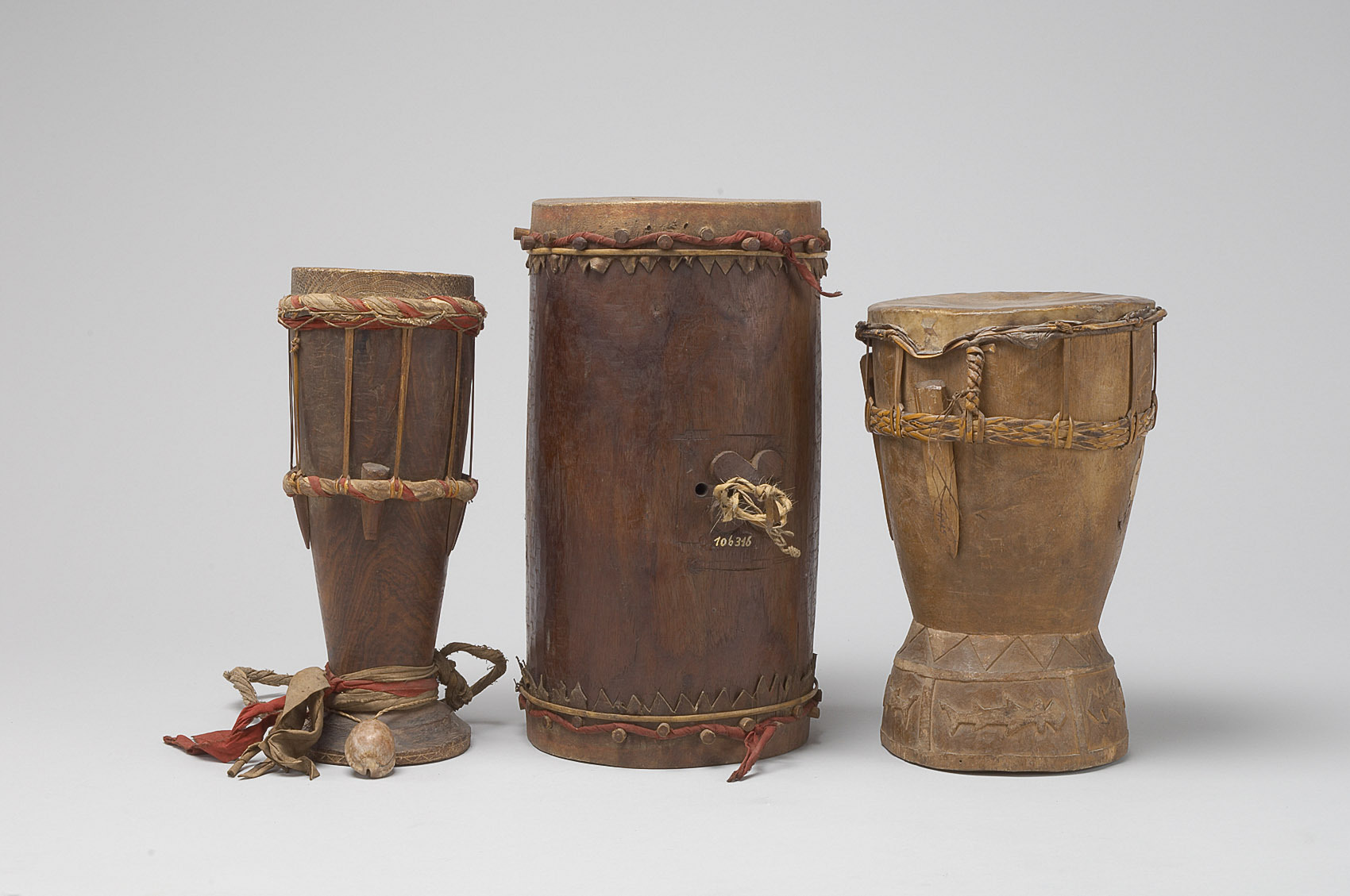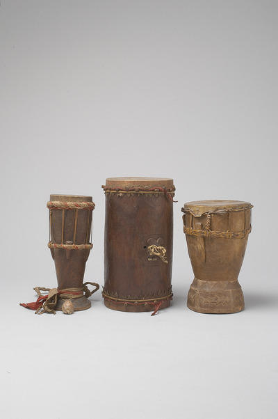 Holz, Rohhaut, Rattan; geschnitzt