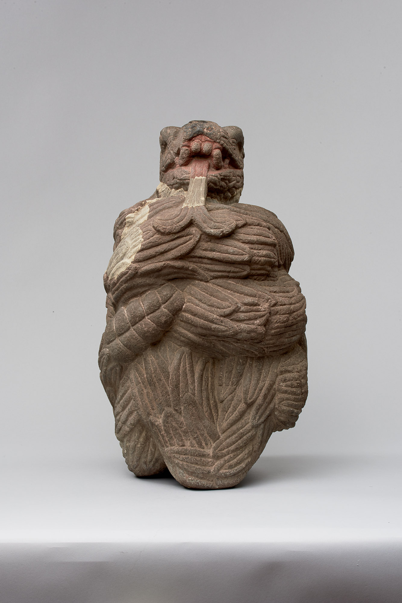 Eine zusammengerollte Klapperschlange mit großen Zähnen und einer gespaltenen Zunge. Beim Maul sind noch Spuren von roter Farbe zu erkennen – die Götterstatuen hatten ursprünglich alle Gesichtsbemalungen. Vorne links ist das typische Schwanzende einer Klapperschlange zu sehen. Um eine naturalistische Darstellung handelt es sich allerdings nicht, denn diese Schlange ist am ganzen Körper gefiedert.Quetzalcóatl war die letzten Jahrhunderte vor der Eroberung eine sehr bedeutende Gottheit. Die gefiederte Schlange sagt man oft, auch zu übersetzen als strahlende, also kostbare Schlange. Quetzal wird meist mit gefiedert übersetzt, im übertragenen Sinn ist das auch als kostbar oder strahlend zu bezeichnen. Es geht alles in einander über, es ist wirklich alles fließend. Es war ein Kulturgott. Er hat auch die Menschen geschaffen, er hat die Schrift erfunden. Es gibt unterschiedliche Traditionen, und all die Traditionen sind sehr lückenhaft überliefert.Die mesoamerikanische Mythologie bedeutet den Mexikanerinnen und Mexikanern noch heute viel. Víctor Torres Pérez lebt seit mehreren Jahren in Österreich. Hören Sie, was er über diese Wand mit den Götterfiguren denkt: And there is this exposition now with these small figures about gods. That is our mythology! For example, this Quetzalcóatl figure is the Prometheus of the Greeks, the one who brings knowledge to the Mesoamerican cultures, pre-Columbian cultures.Jetzt gibt es diese Ausstellung mit den kleinen Götter-Statuen. Das ist unsere Mythologie! Zum Beispiel Quetzalcóatl ist der Prometheus der Griechen, derjenige, der den mesoamerikanischen, den präkolumbischen Kulturen das Wissen bringt.