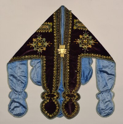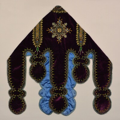 Seide, Tambourierstickerei auf Samt; Futter Moiré; Silber teilweise vergoldet (Metall)