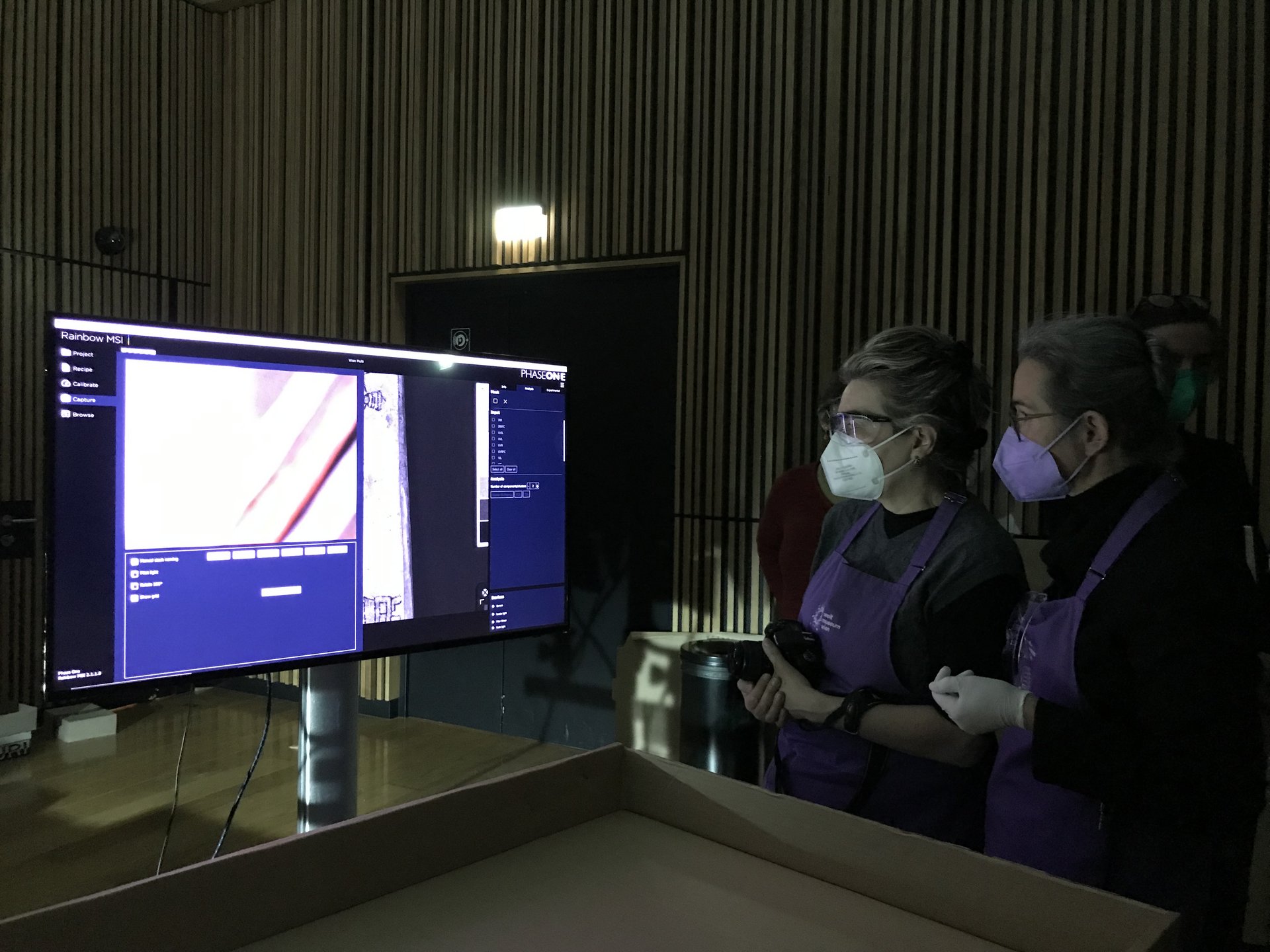 Neben der Konsultation von Ornithologen wollten wir die fortschrittlichsten und zerstörungsfreien Bildgebungsverfahren testen, die uns zur Verfügung stehen. Im Oktober 2021 hatte das Weltmuseum Wien die Gelegenheit, eine Vorführung des multispektralen Bildgebungsgeräts PhaseOne und einen Vortrag von Dr. Annette T. Keller zu präsentieren.