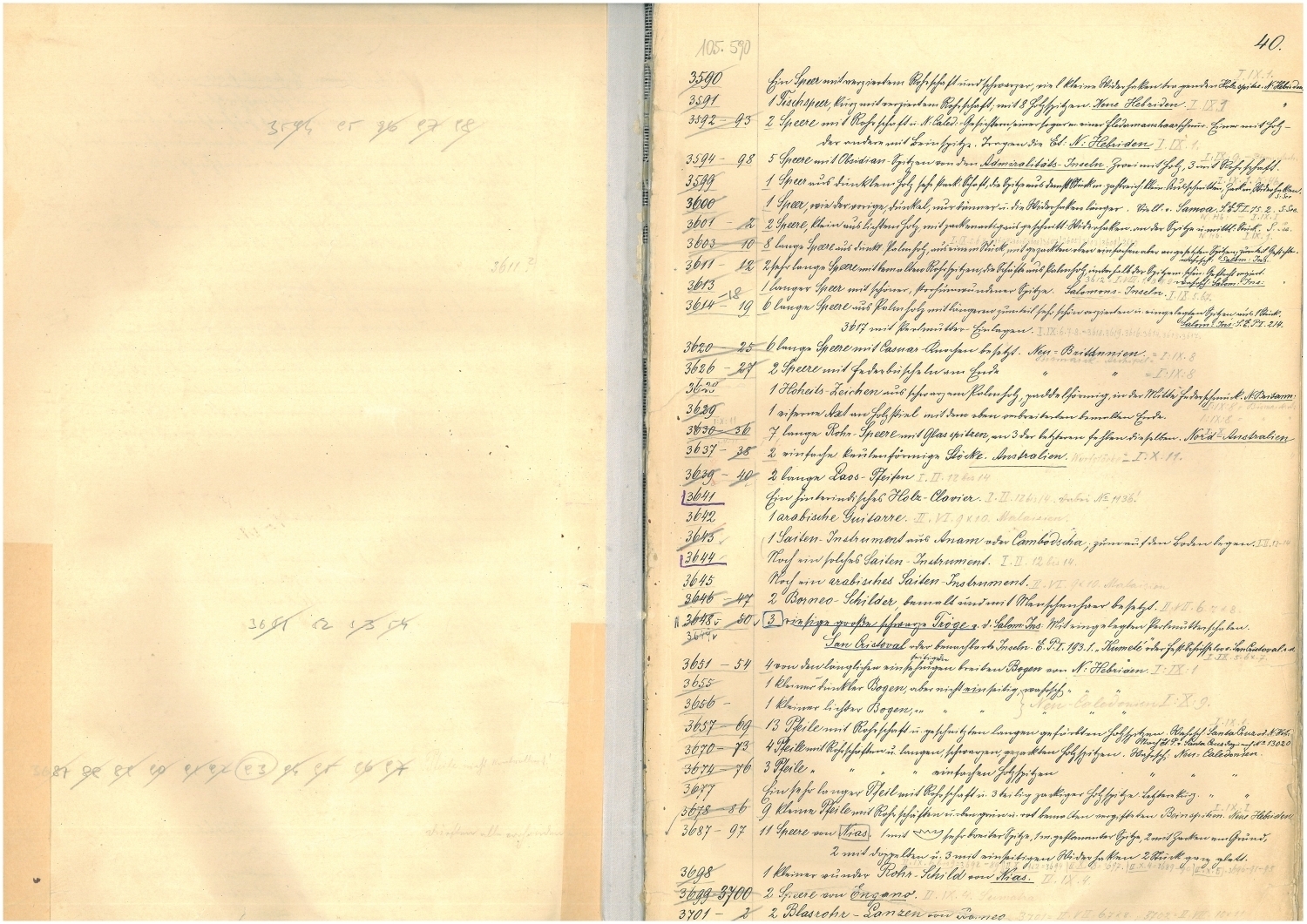 Von Franz Heger, dem Leiter der anthropologisch-ethnographischen Abteilung am naturhistorischen Hofmuseum, verfasstes handschriftliches Inventar der ethnographischen Weltreisesammlung von Franz Ferdinand von Österreich-Este