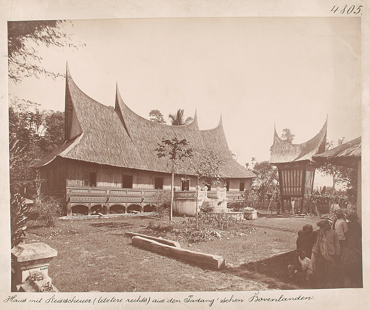 „Haus mit Reisscheuer (letztere rechts) aus dem Padang'schen Bovenlanden"