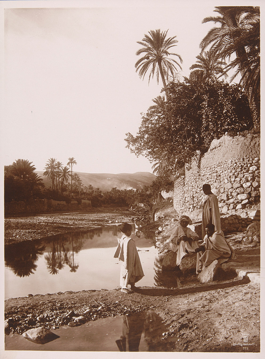 Knaben an Wasserstelle vor einer Mauer