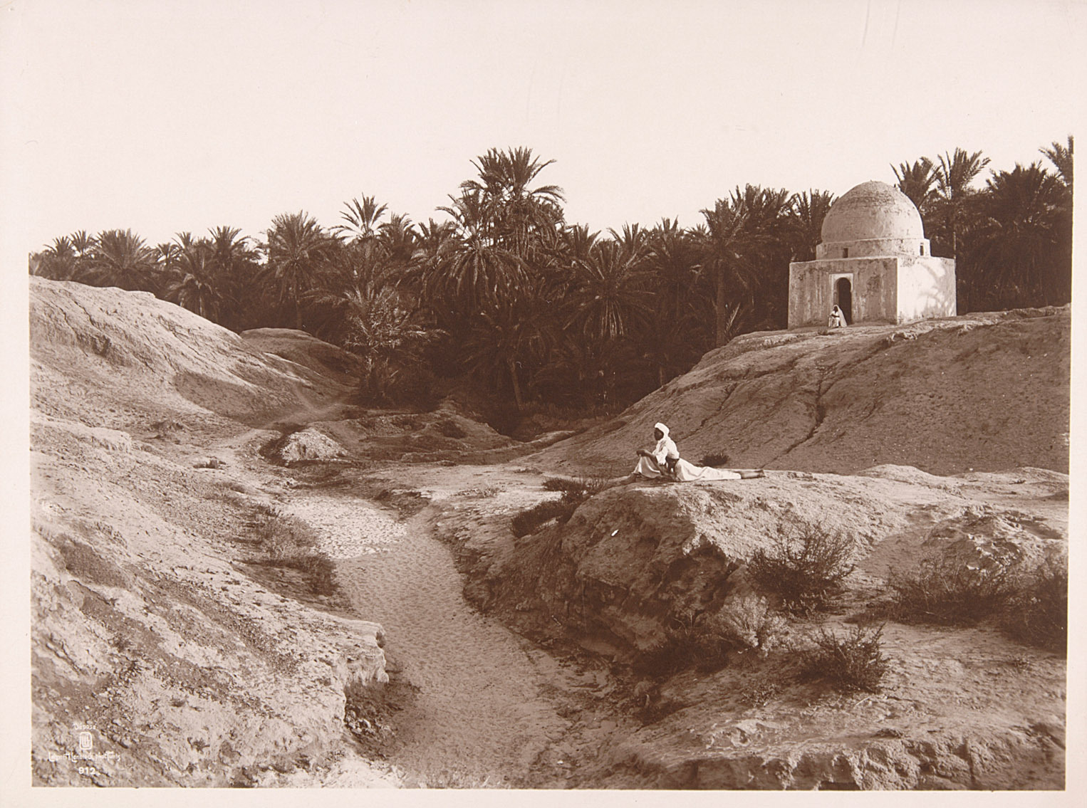 Ausgetrocknetes Flußbett mit Grab eines Marabou