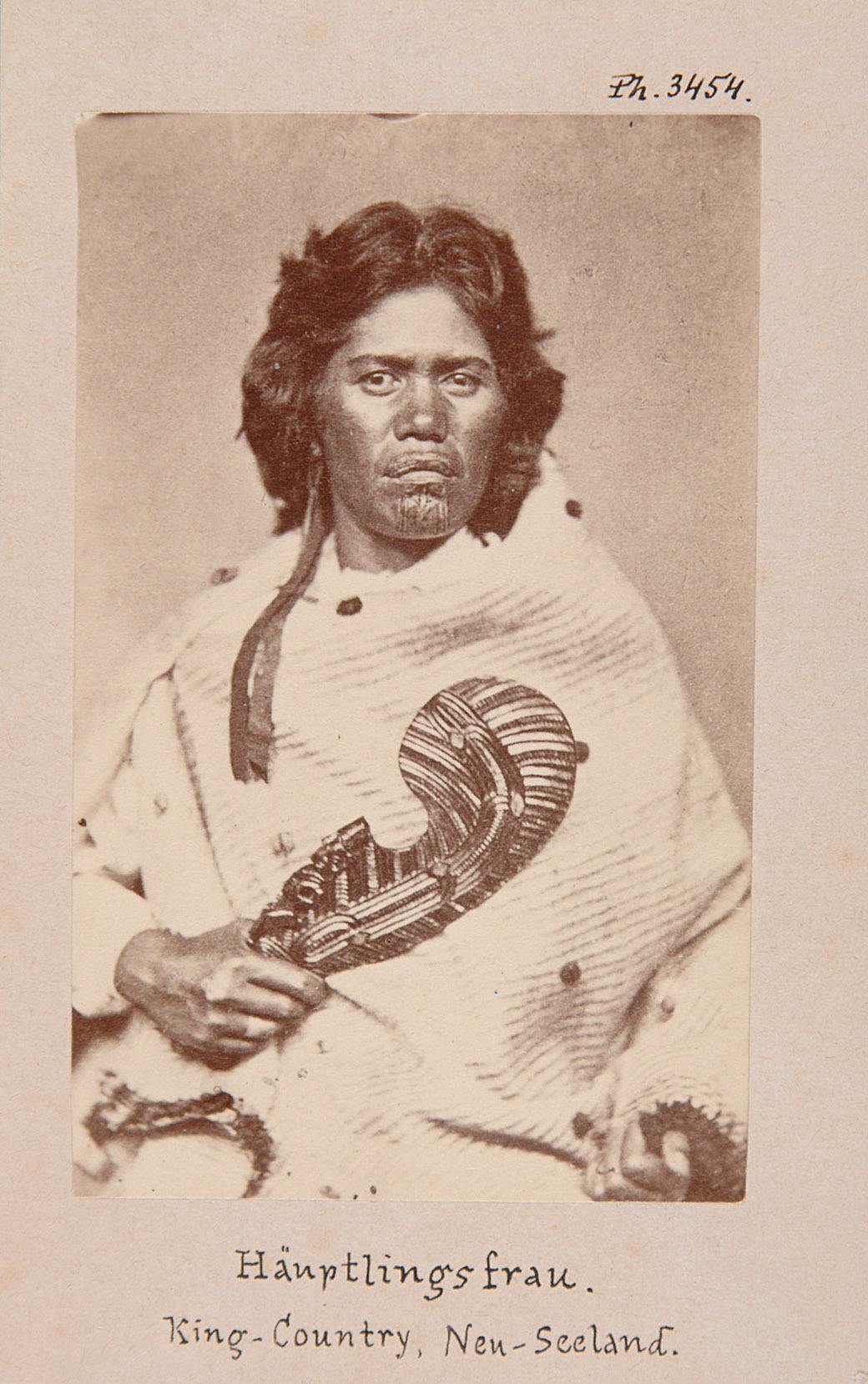 Māori-Frau mit typischer Lippen- und Kinntätowierung
