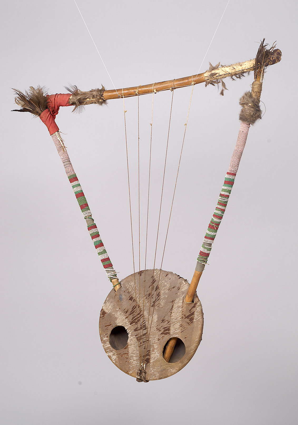 Holz, Fell, Textil, Pflanzenfaser, Federn, Glasperlen, Darmsaiten, Nägel, Leder