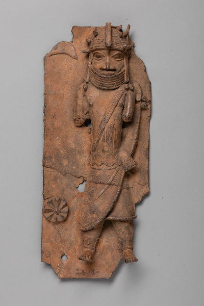 Diese Reliefplatte: Würdenträger ist Teil der historischen Sammlungen aus dem Königreich Benin im heutigen Nigeria. 1897 wurde das Königreich erobert und dessen Oba (König) Ovonramwen ins Exil verbannt. Die aus dem Königspalast geraubten Kunstschätze wurden anschließend über den Kunstmarkt verkauft, um die Eroberung rückwirkend zu finanzieren. Viele dieser Objekte sind heute Teil europäischer Sammlungen.