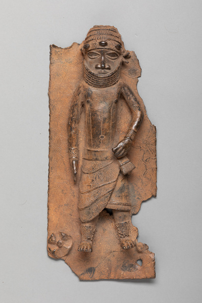Diese Reliefplatte: Würdenträger ist Teil der historischen Sammlungen aus dem Königreich Benin im heutigen Nigeria. 1897 wurde das Königreich erobert und dessen Oba (König) Ovonramwen ins Exil verbannt. Die aus dem Königspalast geraubten Kunstschätze wurden anschließend über den Kunstmarkt verkauft, um die Eroberung rückwirkend zu finanzieren. Viele dieser Objekte sind heute Teil europäischer Sammlungen.