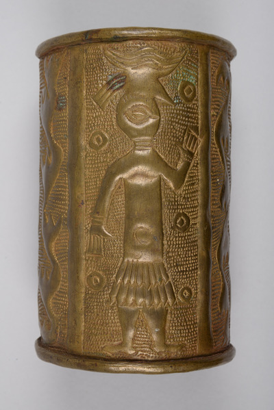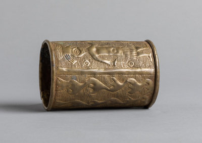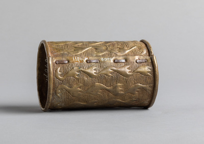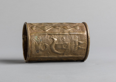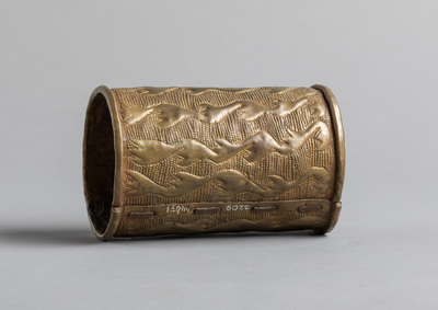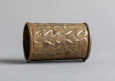 Diese Armmanschette ist Teil der historischen Sammlungen aus dem Königreich Benin im heutigen Nigeria. 1897 wurde das Königreich erobert und dessen Oba (König) Ovonramwen ins Exil verbannt. Die aus dem Königspalast geraubten Kunstschätze wurden anschließend über den Kunstmarkt verkauft, um die Eroberung rückwirkend zu finanzieren. Viele dieser Objekte sind heute Teil europäischer Sammlungen.